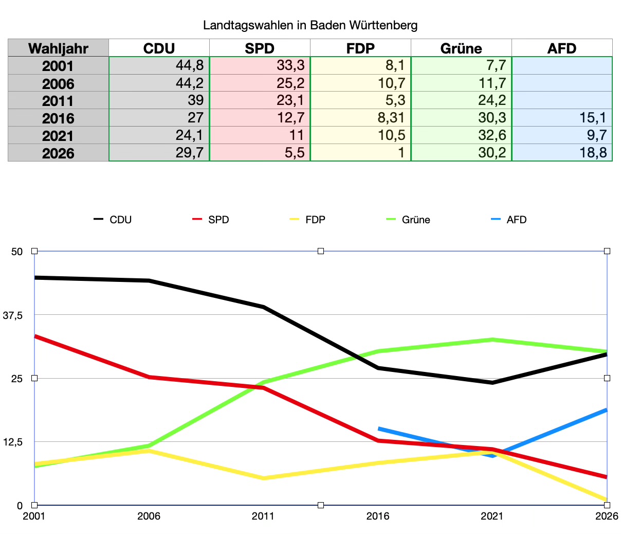 Der wahre Sieger ist die AfD! Schön das die SPD immer mehr in die Bedeutungslosigkeit verschwindet. Wie man Grüne wählen kann, ist mir immer noch ein Rätsel. Schließlich haben SPD, GRÜNE und FDP dafür gesorgt das Deutschland wirtschaftlich untergeht. Die SPD hat die Hälfte der Wähler verloren. Jetzt können sie wieder beruhigt Entenleberpastete aus Frankreich genießen. Da sie bedeutungslos sind. Die Grünen sehen sich als Wahlgewinner haben aber auch 2% verloren. Nur CDU und AfD konnten Wähler gewinnen. 9% mehr ist schon eine starke Leistung der AfD. Nun hat Baden-Württemberg den ersten moslemischen Ministerpräsident in Deutschland. Gewöhnen wir uns schon mal dran.